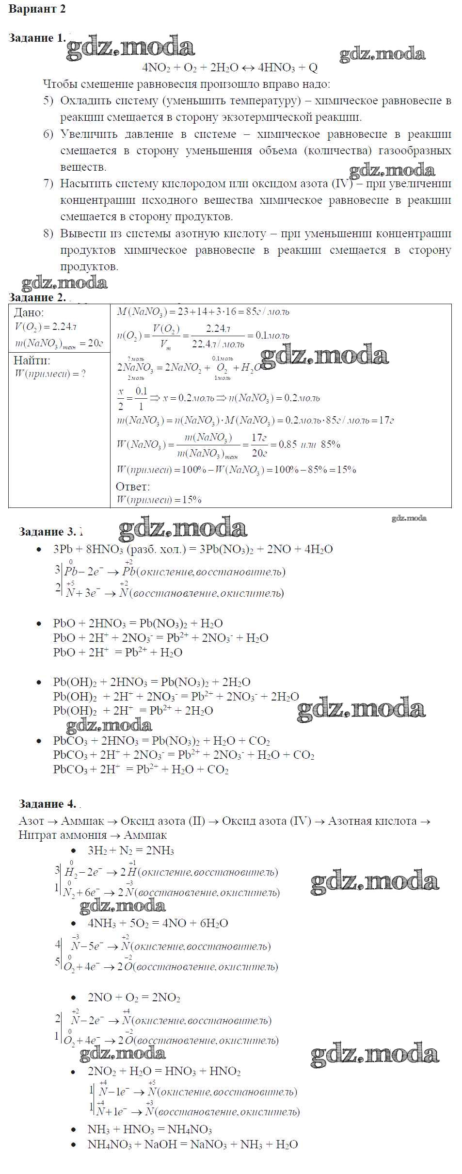 ОТВЕТ на задание № вариант-2 Задачник по Химии 9 класс Кузнецова Алгоритм успеха