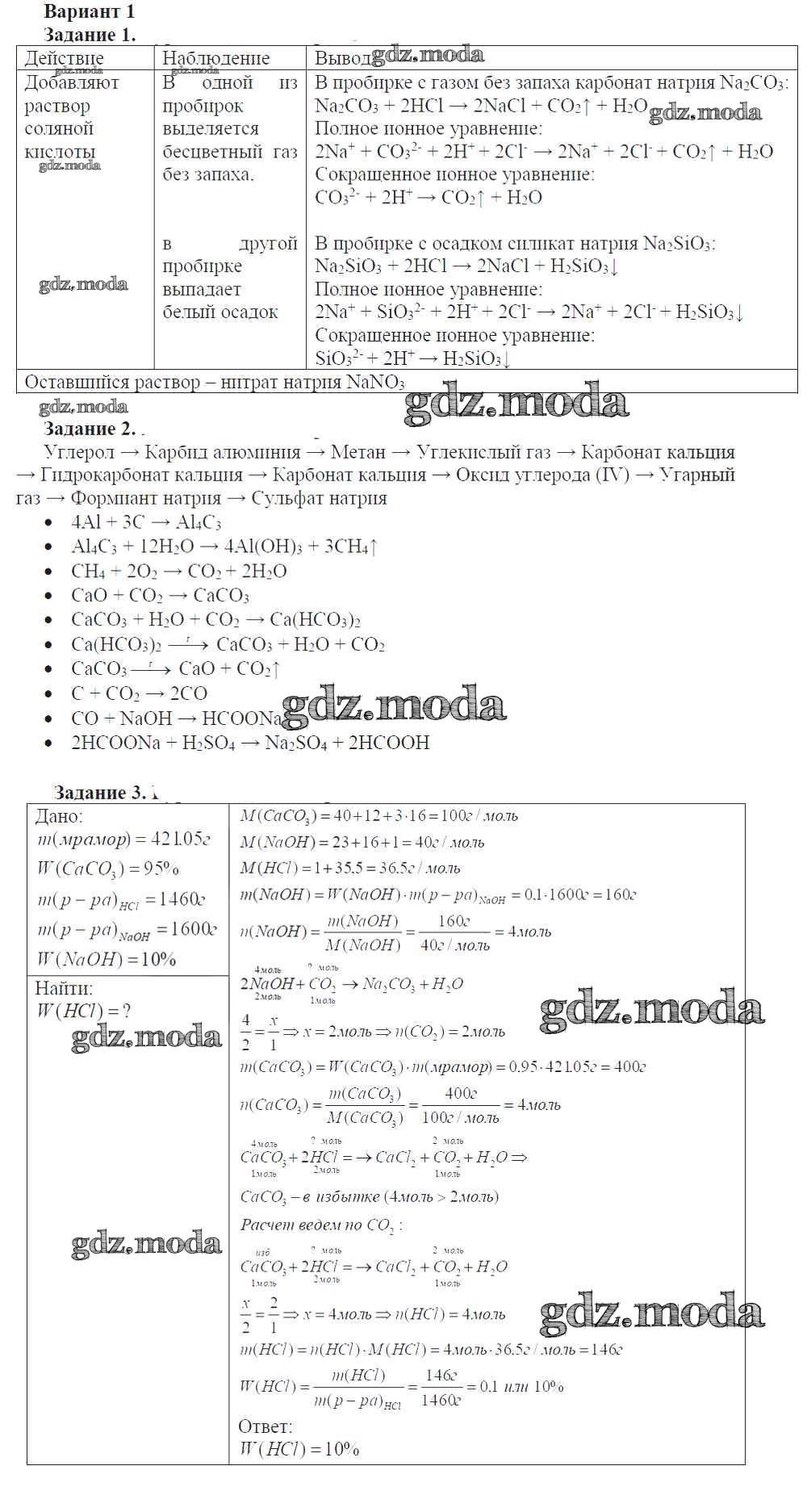 ГДЗ решение к заданию № вариант-1 Химия 9 класс задачник Кузнецова Н.Е. Вентана-граф 2015 ФГОС бесплатно на гдз.мода!