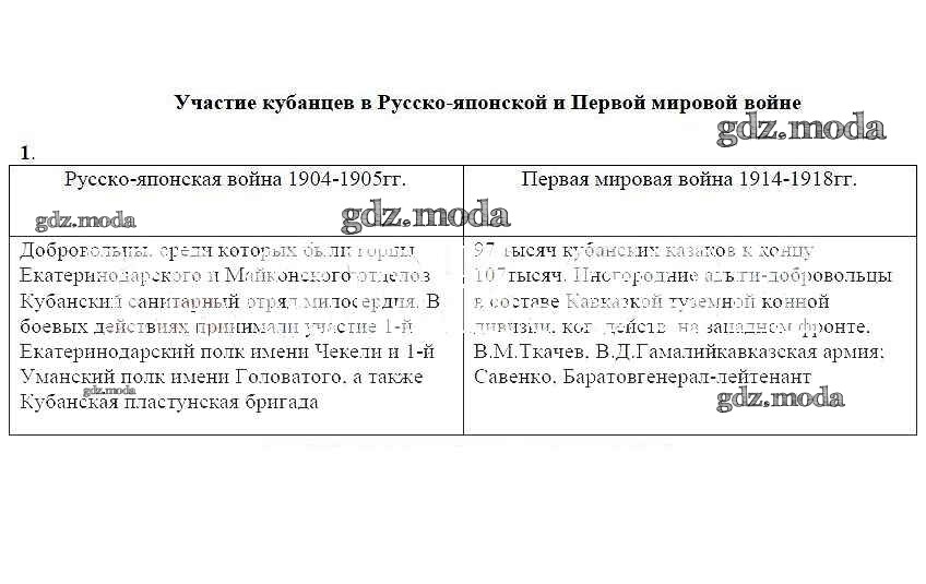 ОТВЕТ на задание № 1 Рабочая тетрадь по Кубановедению 9 класс Лунева