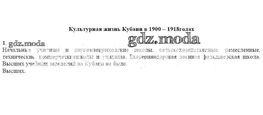 ГДЗ решение к заданию № 1 Кубановедение 9 класс рабочая тетрадь Лунева Ю.Г. Перспективы образования 2018 бесплатно на гдз.мода!