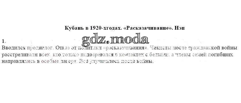 ОТВЕТ на задание № 1 Рабочая тетрадь по Кубановедению 9 класс Лунева