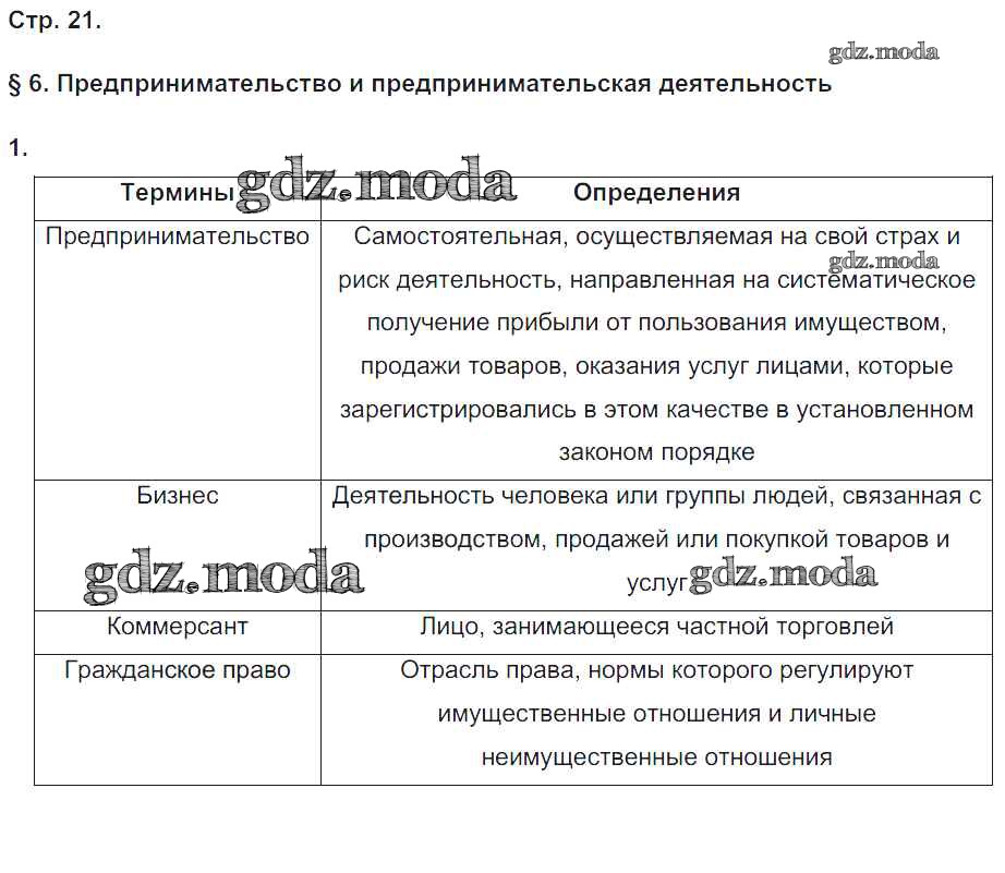 ГДЗ решение к заданию № 21 Обществознание 9 класс рабочая тетрадь Федорова С.А. Дрофа 2019 ФГОС бесплатно на гдз.мода!