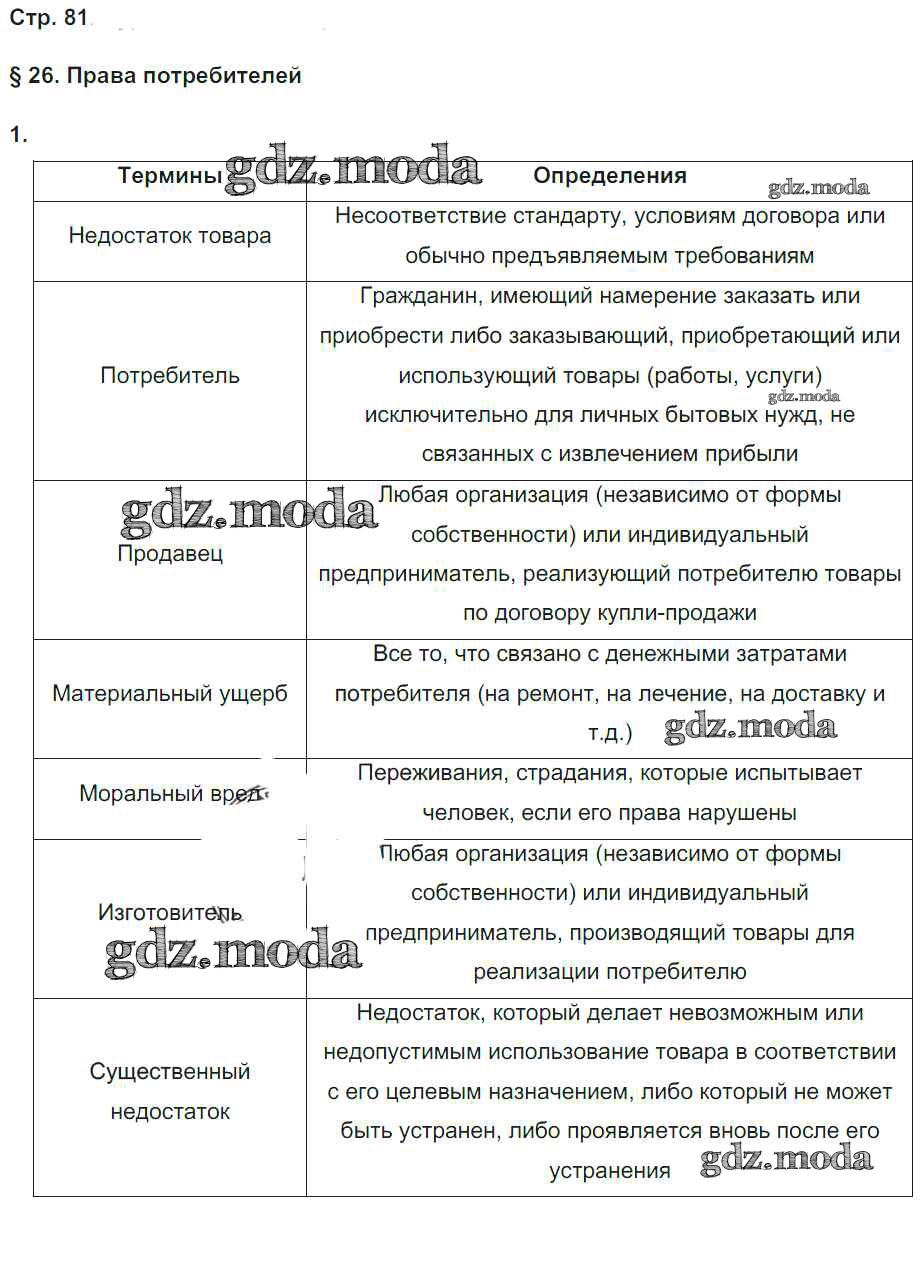 ГДЗ решение к заданию № 81 Обществознание 9 класс рабочая тетрадь Федорова С.А. Дрофа 2019 ФГОС бесплатно на гдз.мода!