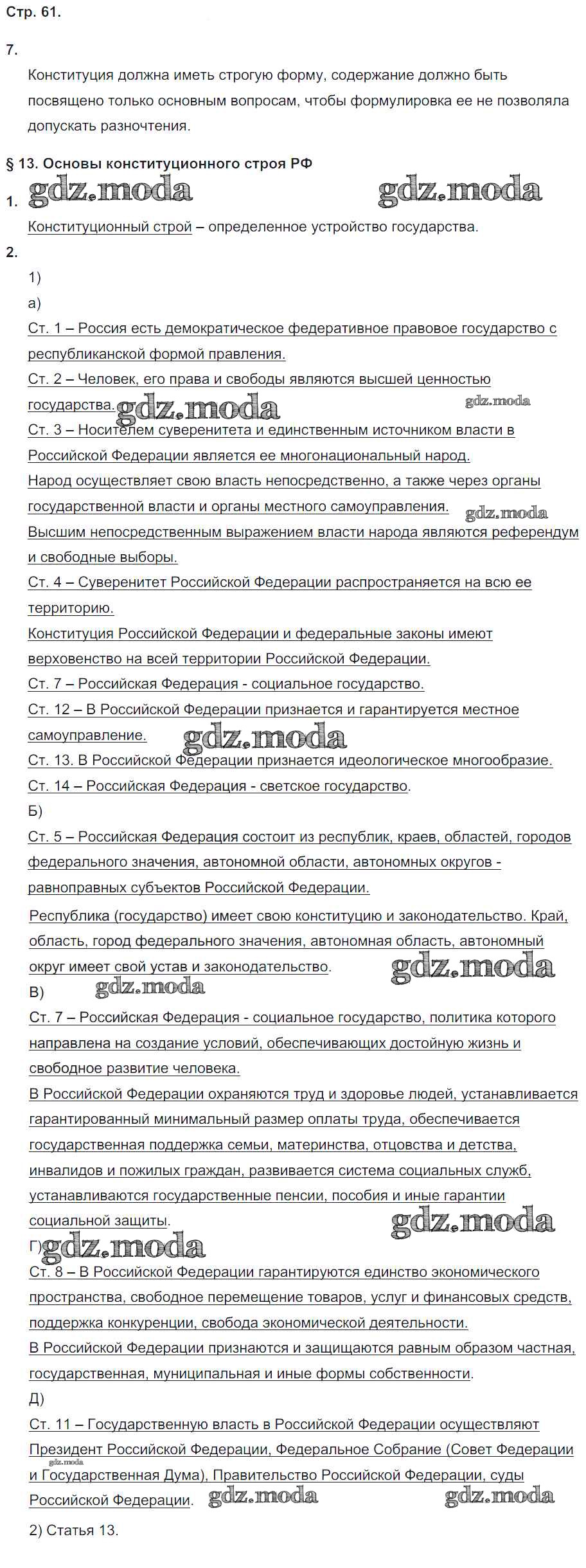 ГДЗ решение к заданию № 61 Обществознание 9 класс рабочая тетрадь Котова О.А. Просвещение 2016 ФГОС бесплатно на гдз.мода!