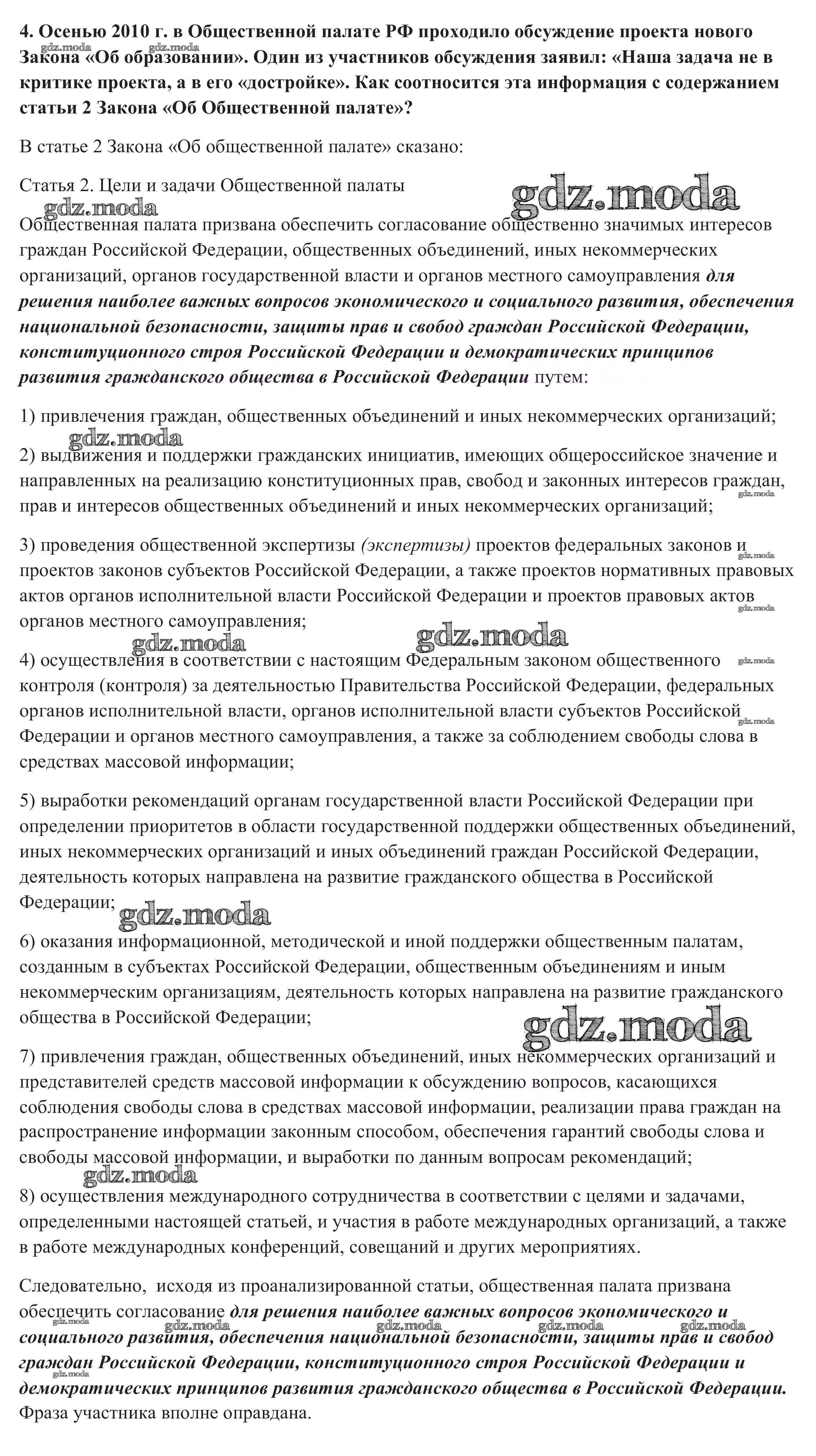 ГДЗ решение к заданию № 4 Обществознание 9 класс Боголюбов Л.Н. Просвещение 2014 ФГОС бесплатно на гдз.мода!