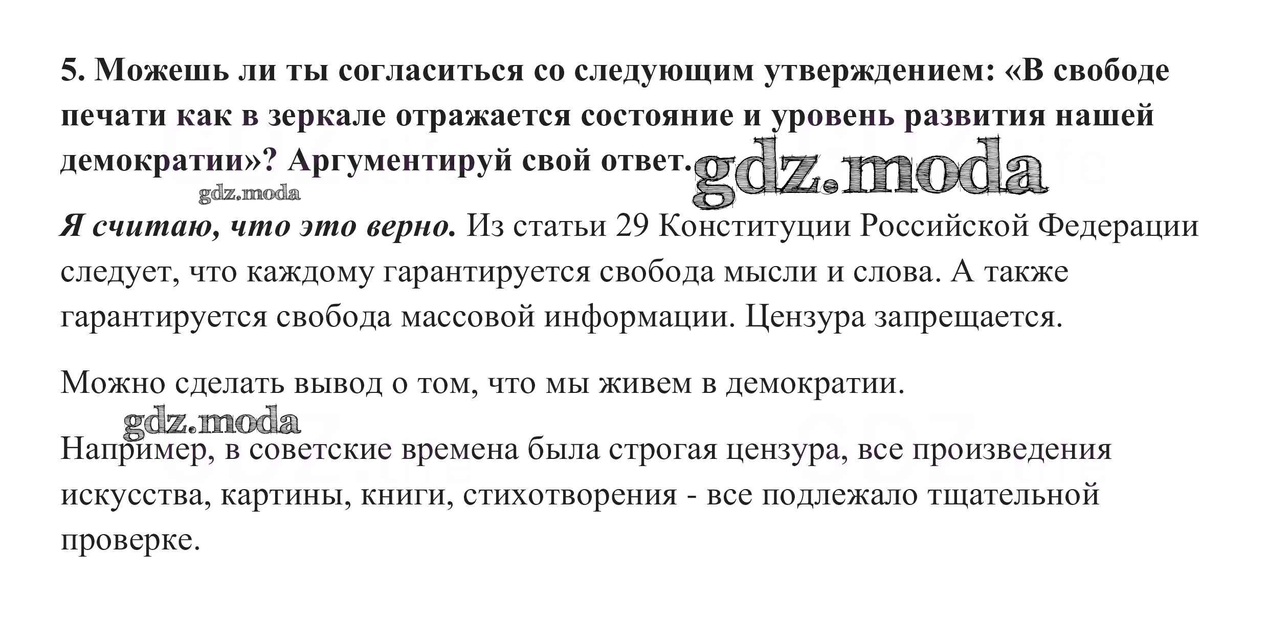 ГДЗ решение к заданию № 5 Обществознание 9 класс Боголюбов Л.Н. Просвещение 2014 ФГОС бесплатно на гдз.мода!