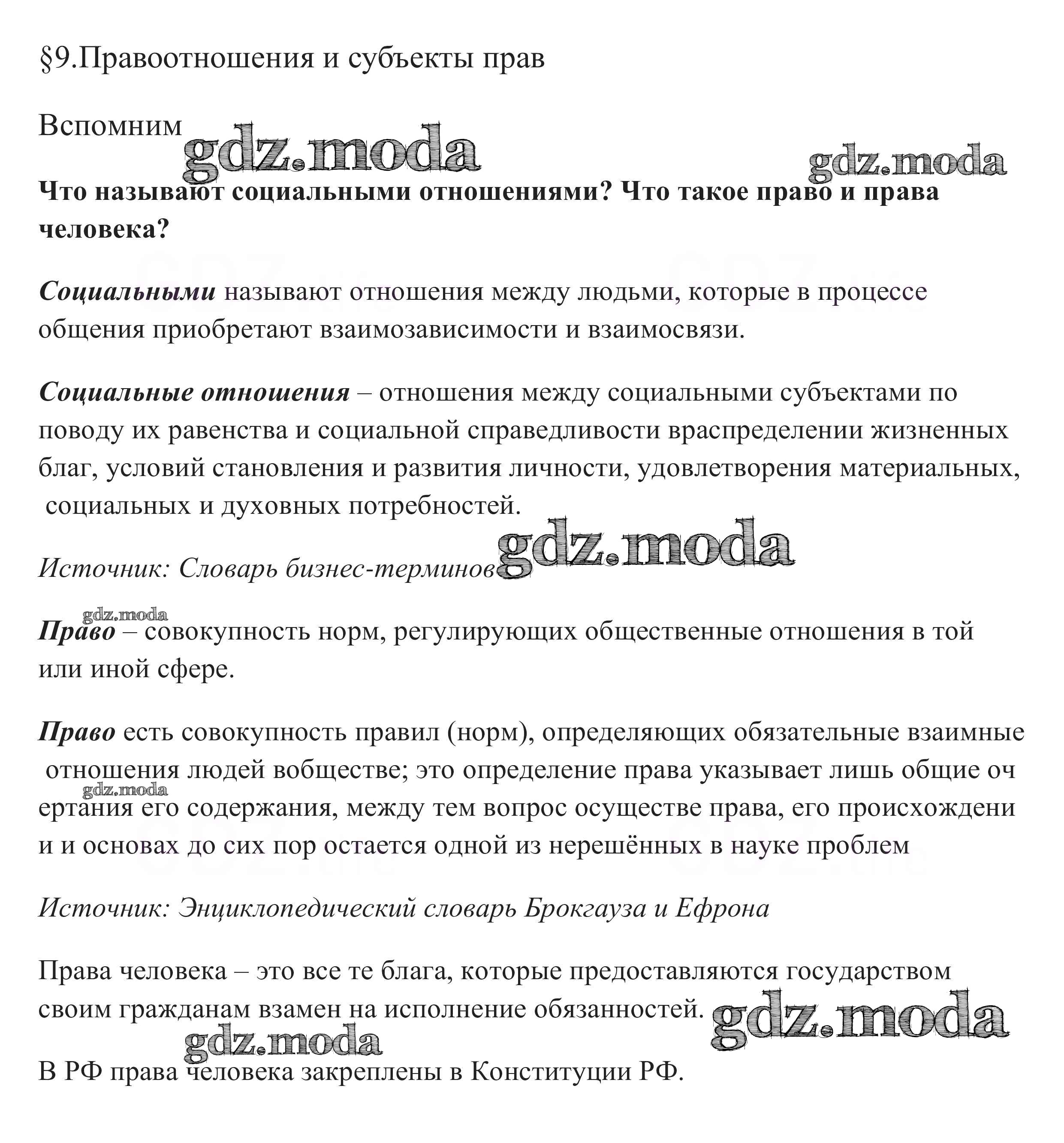 ГДЗ решение к заданию № 1 Обществознание 9 класс Боголюбов Л.Н. Просвещение 2014 ФГОС бесплатно на гдз.мода!