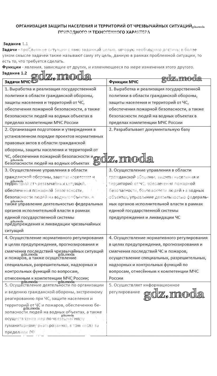 ОТВЕТ на задание № 1 Рабочая тетрадь по ОБЖ 9 класс Подолян