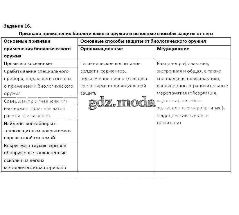 ГДЗ решение к заданию № 16 ОБЖ 9 класс рабочая тетрадь Подолян Ю.П. Дрофа 2018 ФГОС бесплатно на гдз.мода!