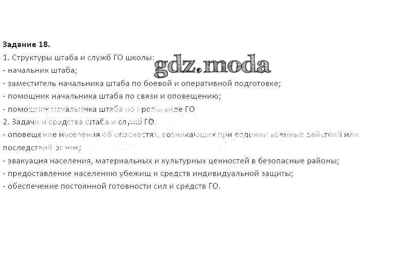 ГДЗ решение к заданию № 18 ОБЖ 9 класс рабочая тетрадь Подолян Ю.П. Дрофа 2018 ФГОС бесплатно на гдз.мода!