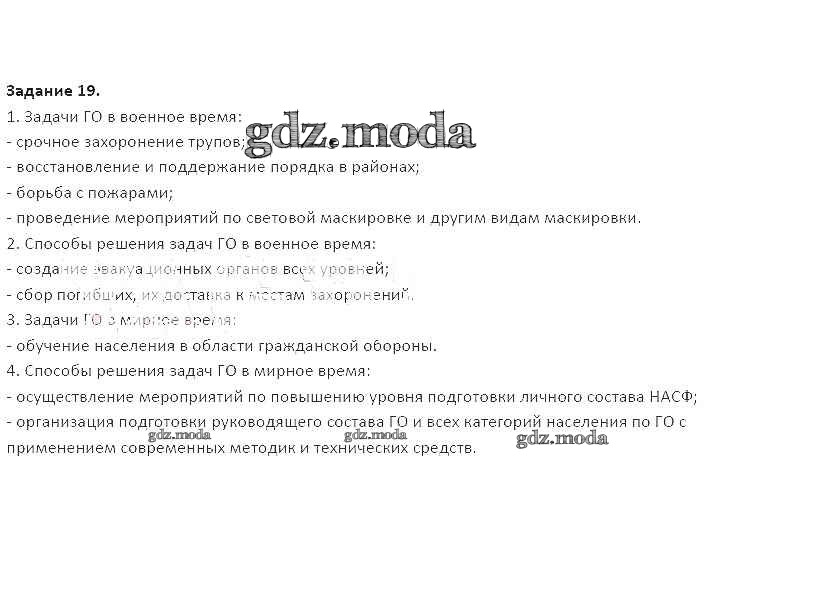 ГДЗ решение к заданию № 19 ОБЖ 9 класс рабочая тетрадь Подолян Ю.П. Дрофа 2018 ФГОС бесплатно на гдз.мода!