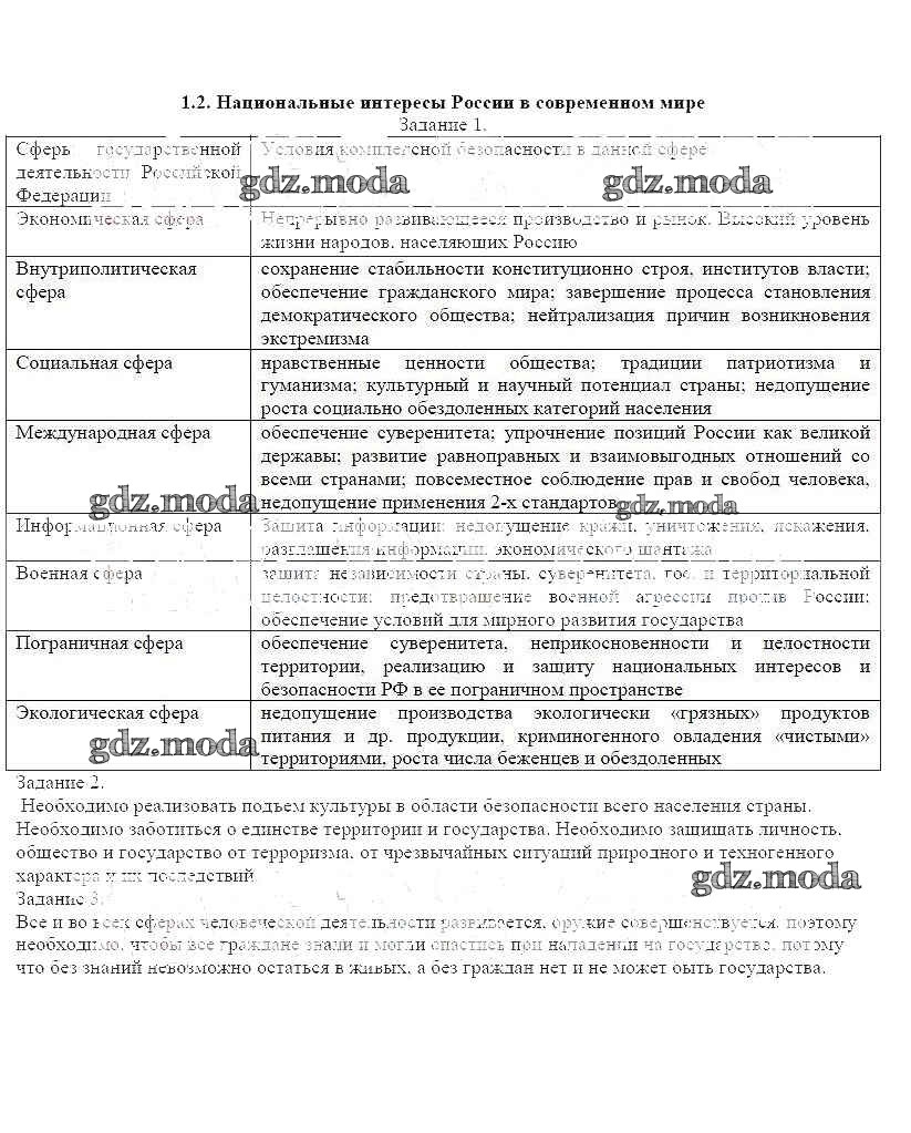 ОТВЕТ на задание № 1.2 Рабочая тетрадь по ОБЖ 9 класс Смирнов