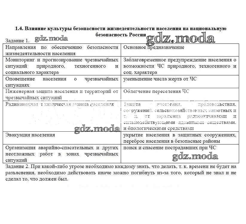 ГДЗ решение к заданию № 1.4 ОБЖ 9 класс рабочая тетрадь Смирнов А.Т. Просвещение 2018 ФГОС бесплатно на гдз.мода!
