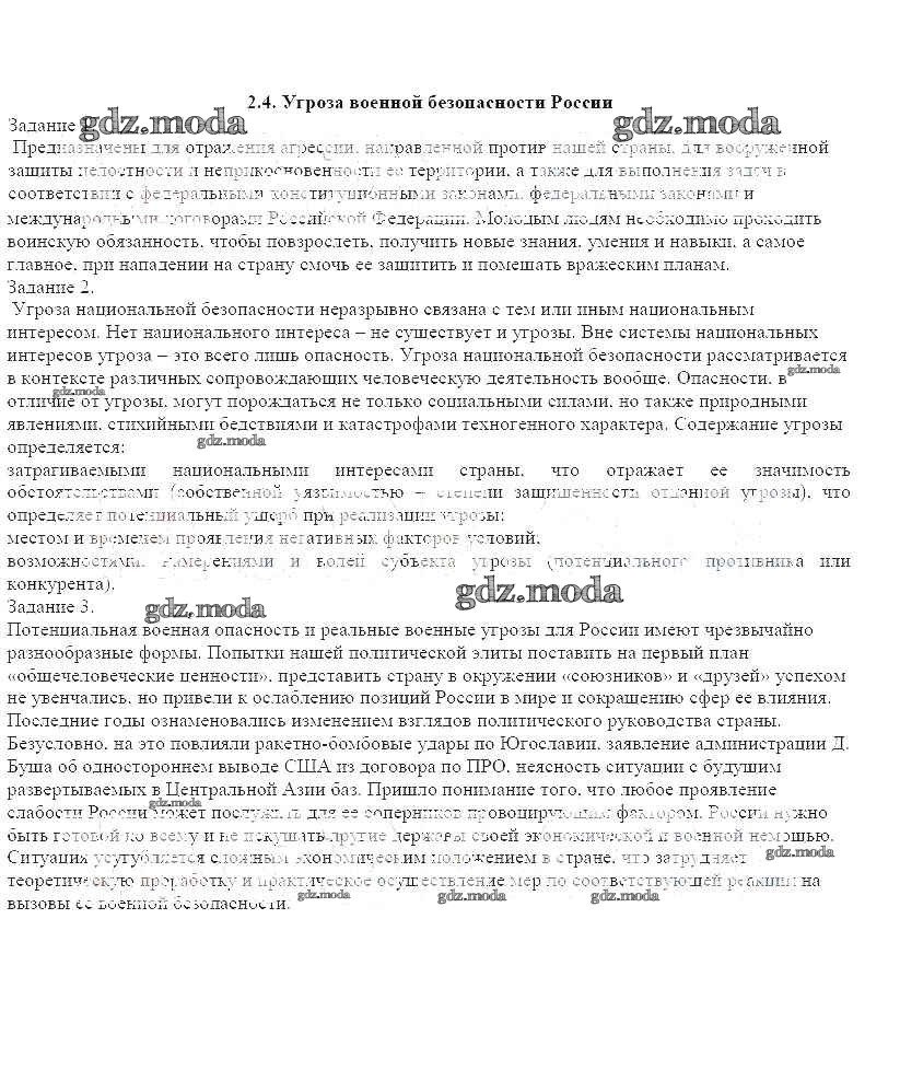 ОТВЕТ на задание № 2.4 Рабочая тетрадь по ОБЖ 9 класс Смирнов