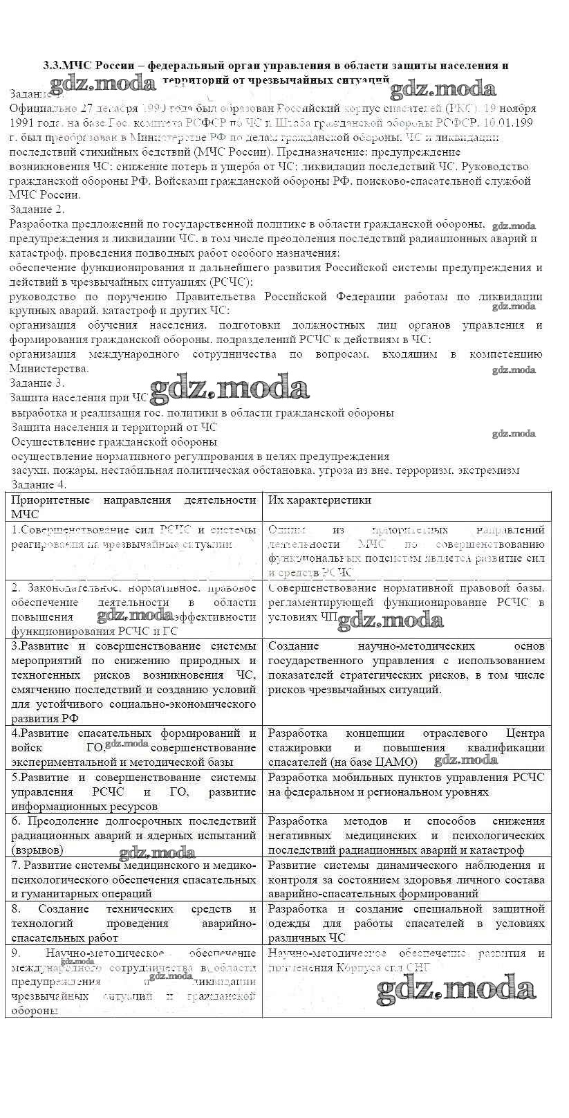 ОТВЕТ на задание № 3.3 Рабочая тетрадь по ОБЖ 9 класс Смирнов