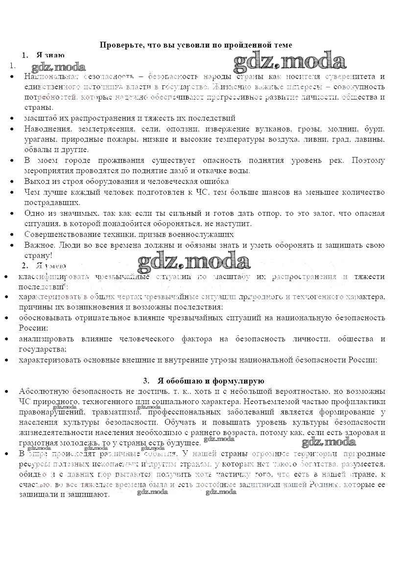ОТВЕТ на задание № Проверьте свои знания Рабочая тетрадь по ОБЖ 9 класс Смирнов