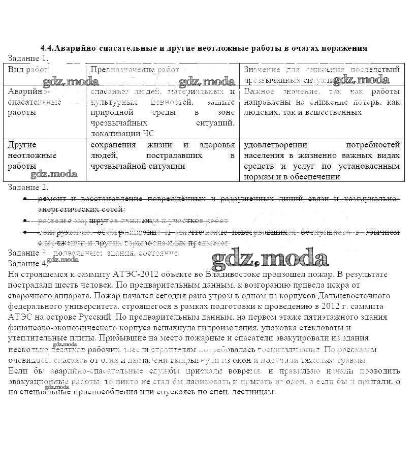 ГДЗ решение к заданию № 4.4 ОБЖ 9 класс рабочая тетрадь Смирнов А.Т. Просвещение 2018 ФГОС бесплатно на гдз.мода!