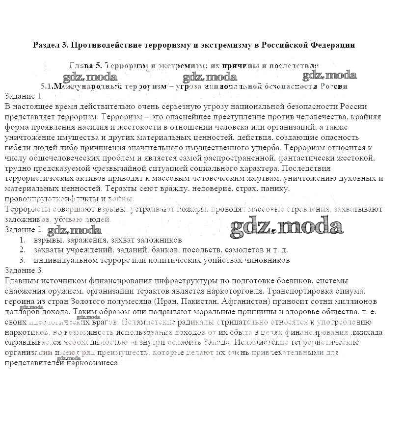 ОТВЕТ на задание № 5.1 Рабочая тетрадь по ОБЖ 9 класс Смирнов