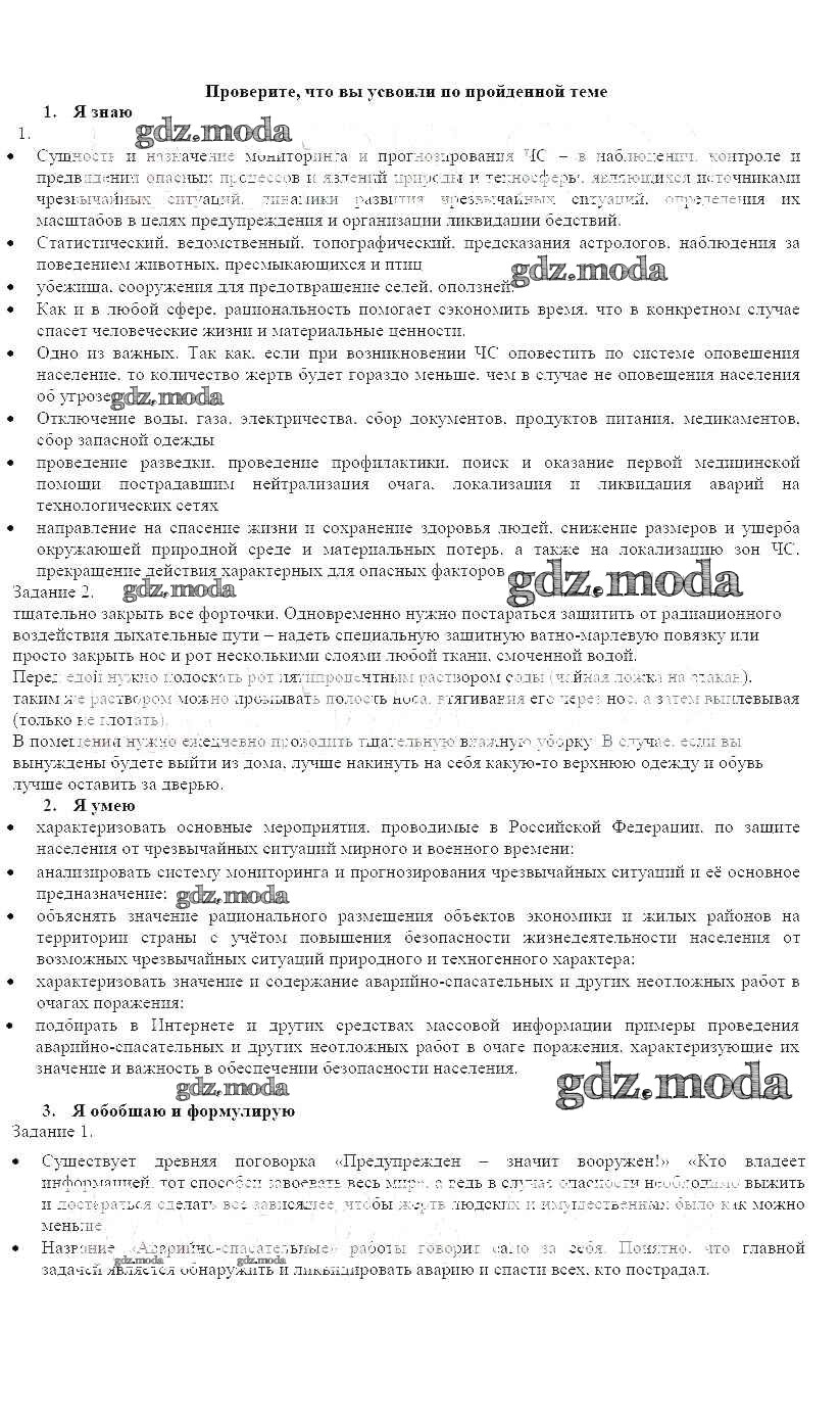 ОТВЕТ на задание № Проверьте свои знания Рабочая тетрадь по ОБЖ 9 класс Смирнов
