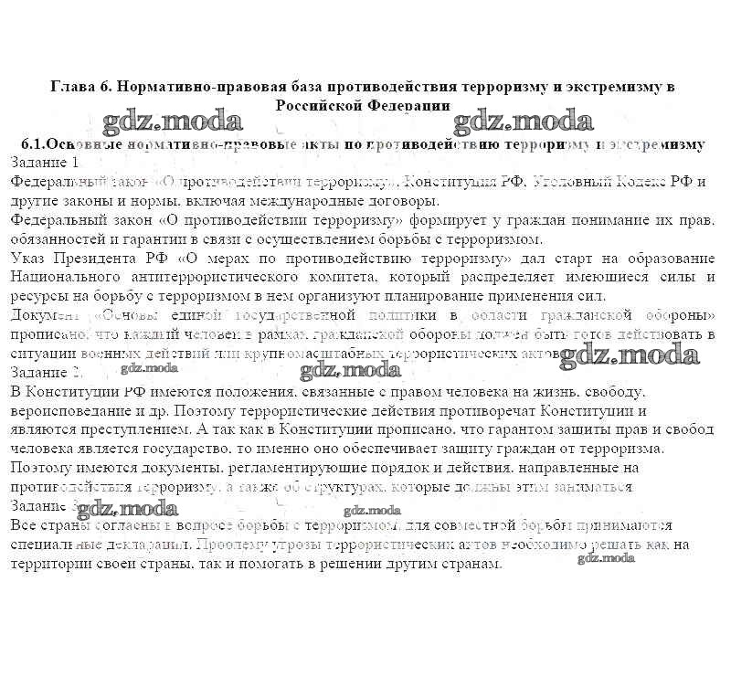 ОТВЕТ на задание № 6.1 Рабочая тетрадь по ОБЖ 9 класс Смирнов