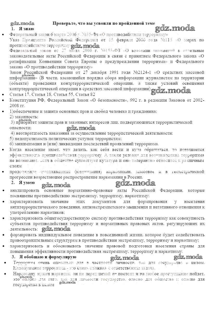 ОТВЕТ на задание № Проверьте свои знания Рабочая тетрадь по ОБЖ 9 класс Смирнов