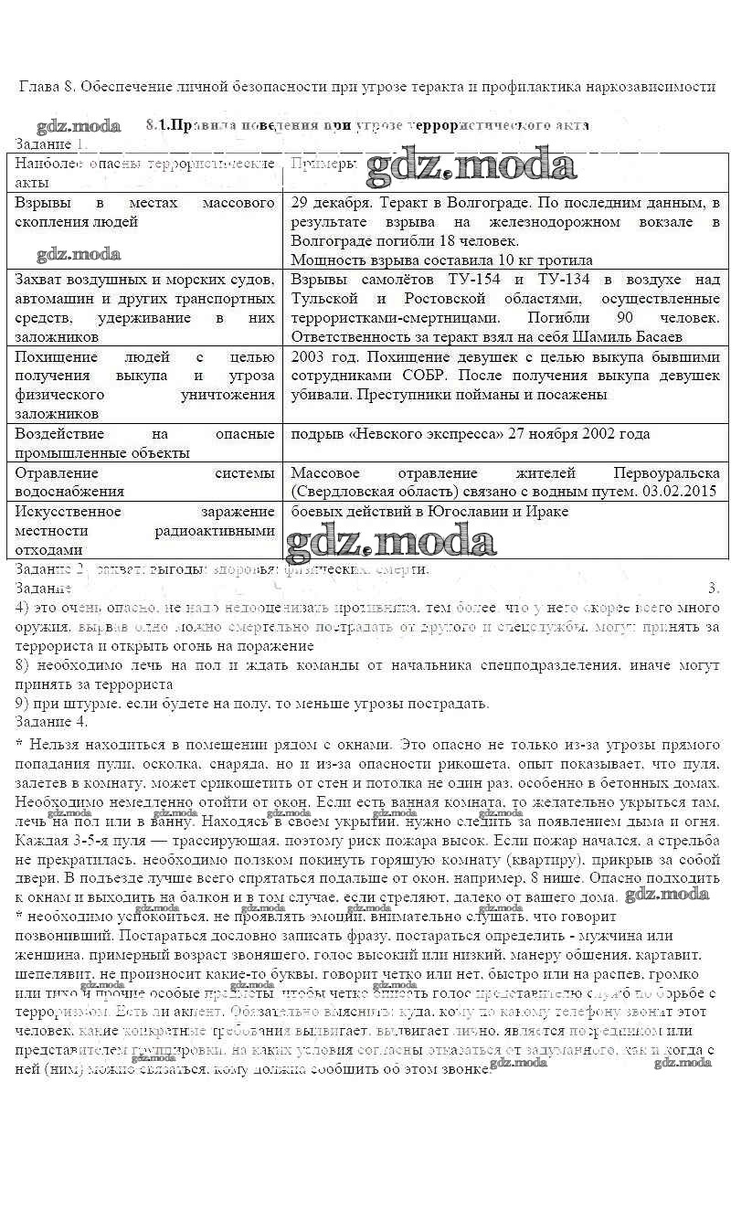 ОТВЕТ на задание № 8.1 Рабочая тетрадь по ОБЖ 9 класс Смирнов