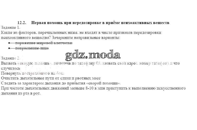 ГДЗ решение к заданию № 12.2 ОБЖ 9 класс рабочая тетрадь Смирнов А.Т. Просвещение 2018 ФГОС бесплатно на гдз.мода!