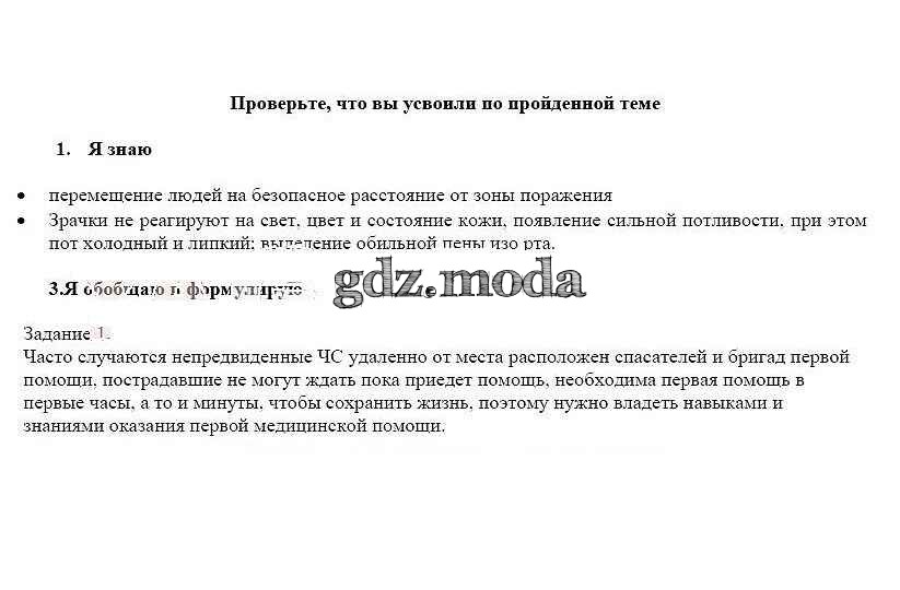 ОТВЕТ на задание № Проверьте свои знания Рабочая тетрадь по ОБЖ 9 класс Смирнов