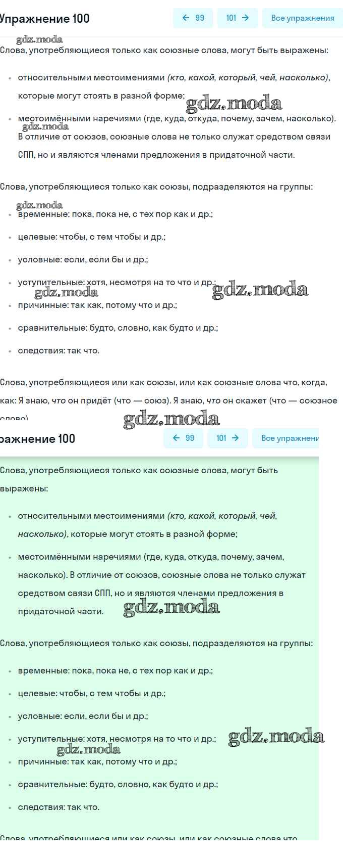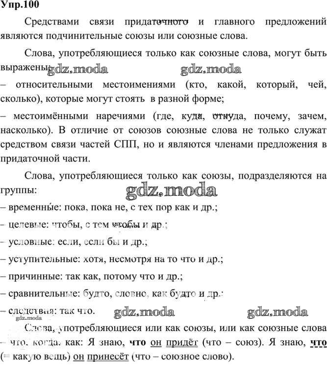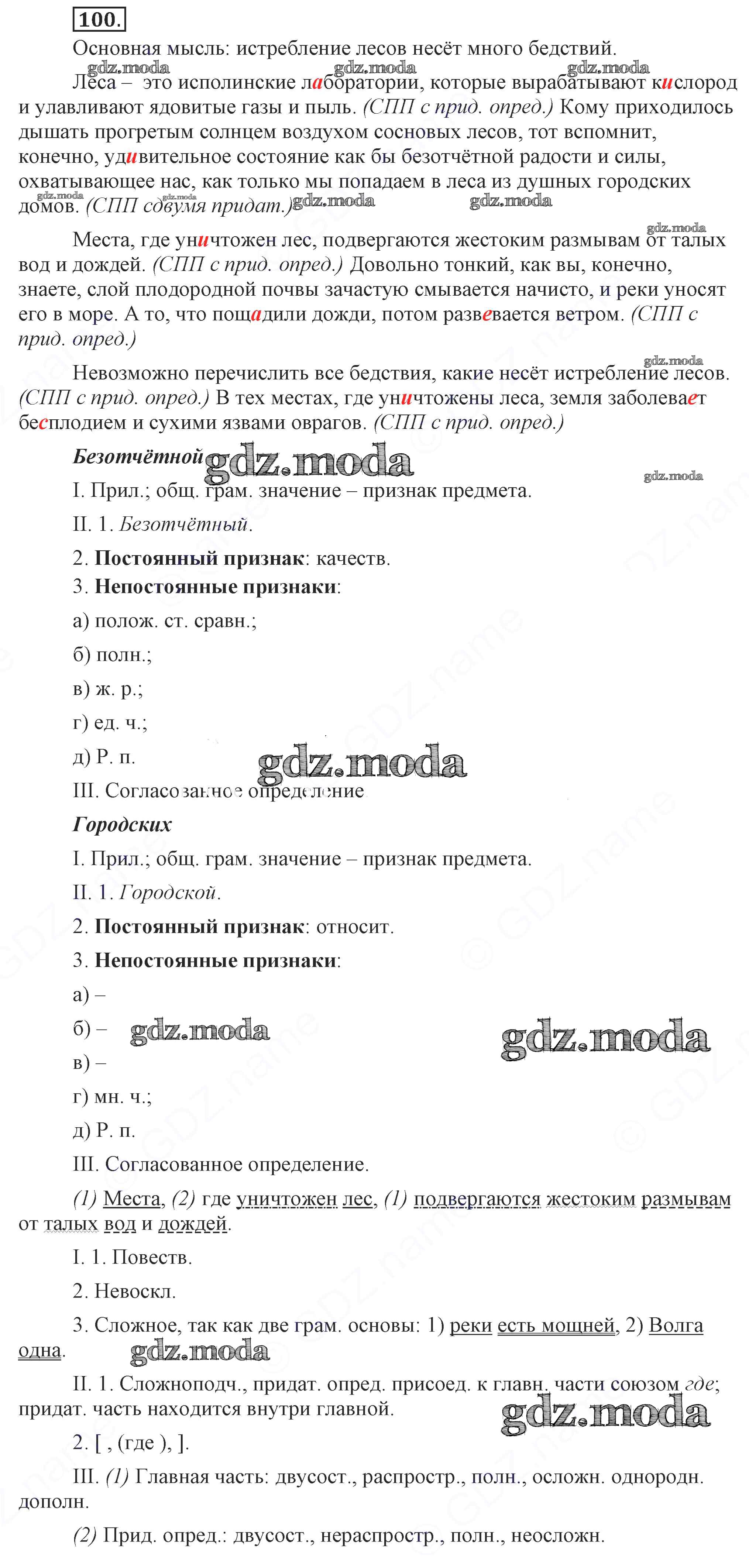 ОТВЕТ на задание № 100 Учебник по Русскому языку 9 класс Бархударов
