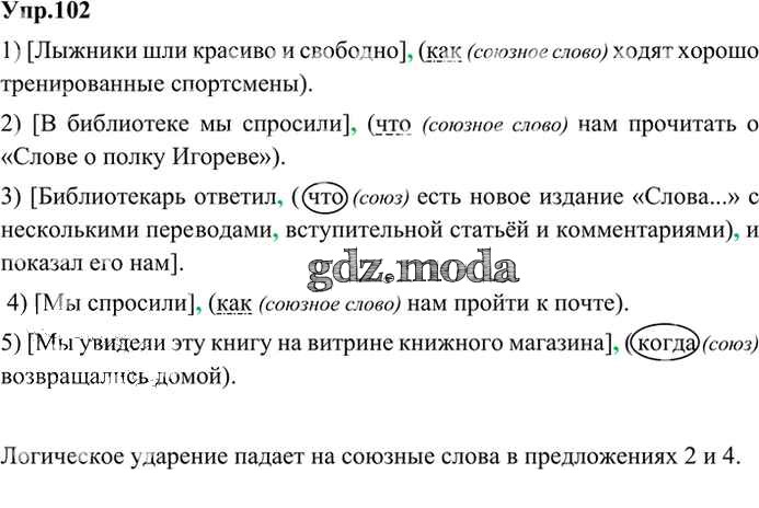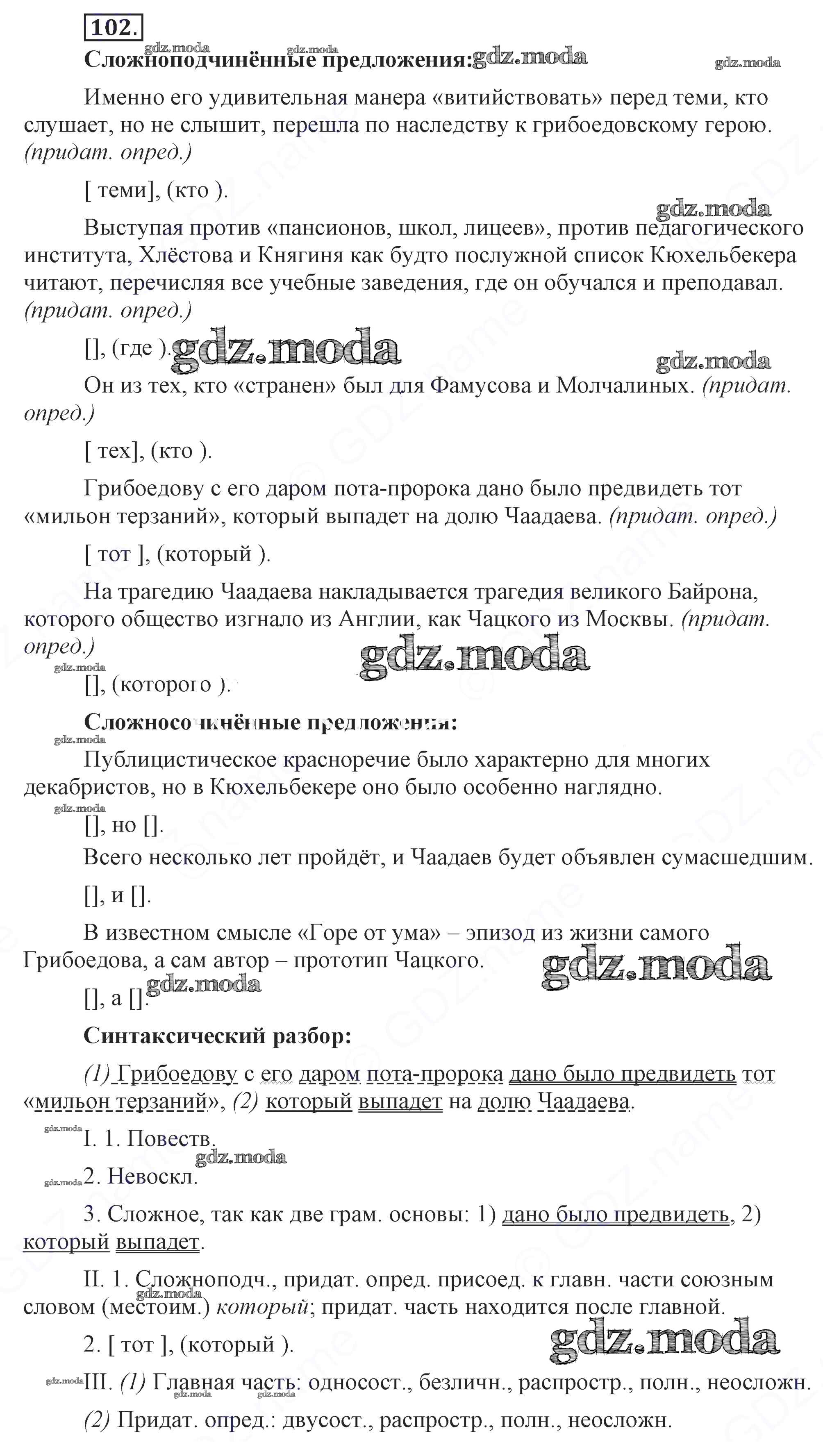 ОТВЕТ на задание № 102 Учебник по Русскому языку 9 класс Бархударов