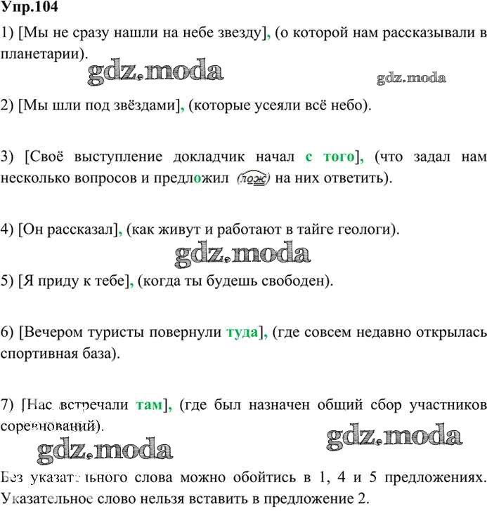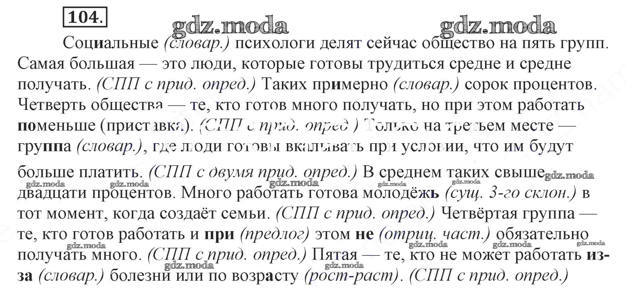 ОТВЕТ на задание № 104 Учебник по Русскому языку 9 класс Бархударов