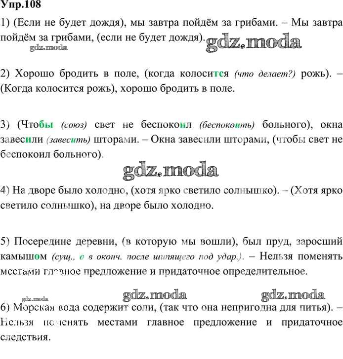 ОТВЕТ на задание № 108 Учебник по Русскому языку 9 класс Бархударов