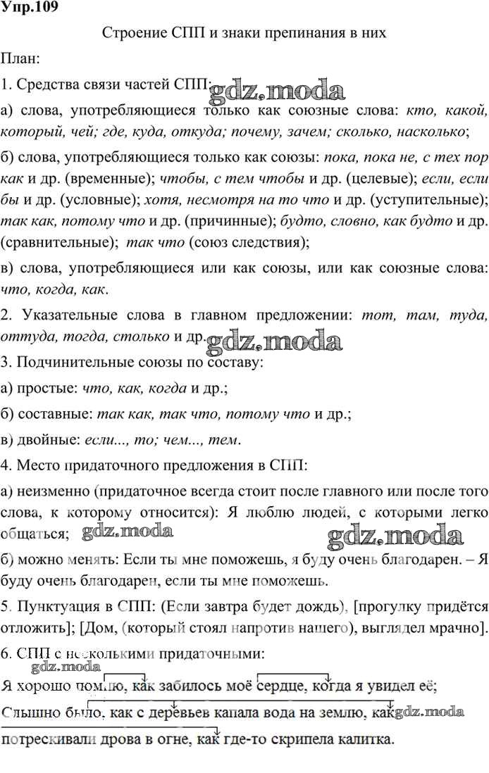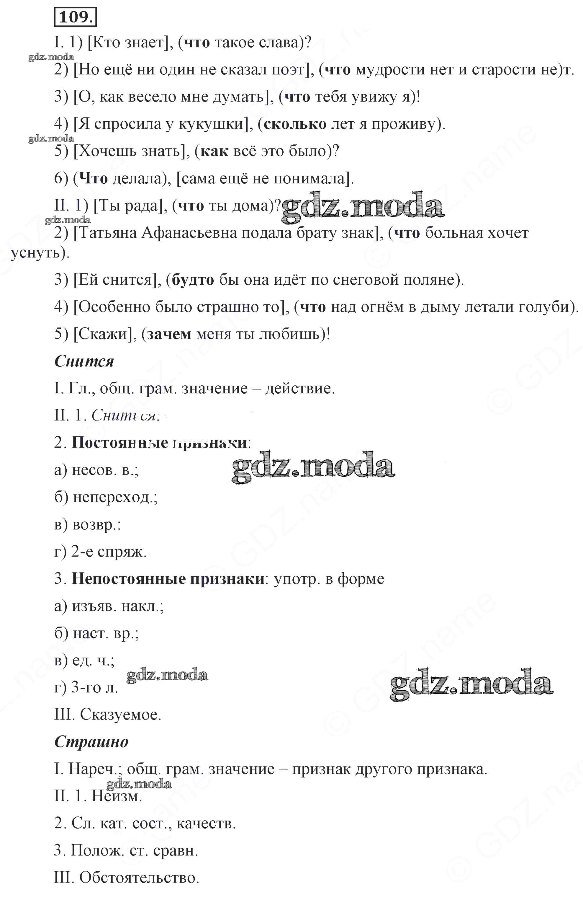 ОТВЕТ на задание № 109 Учебник по Русскому языку 9 класс Бархударов