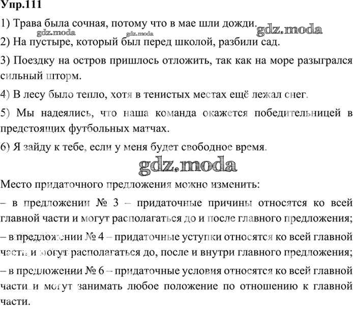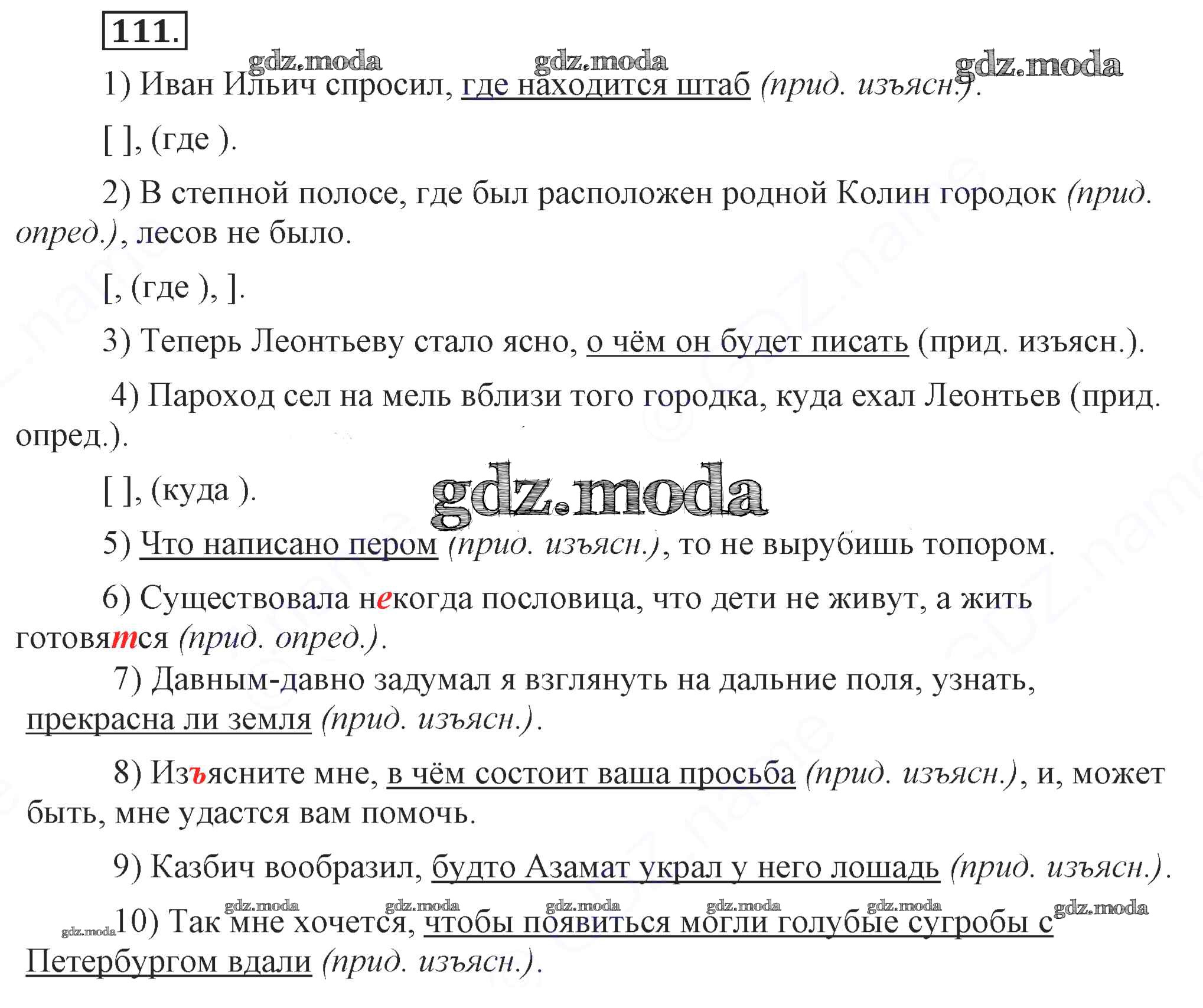 ОТВЕТ на задание № 111 Учебник по Русскому языку 9 класс Бархударов