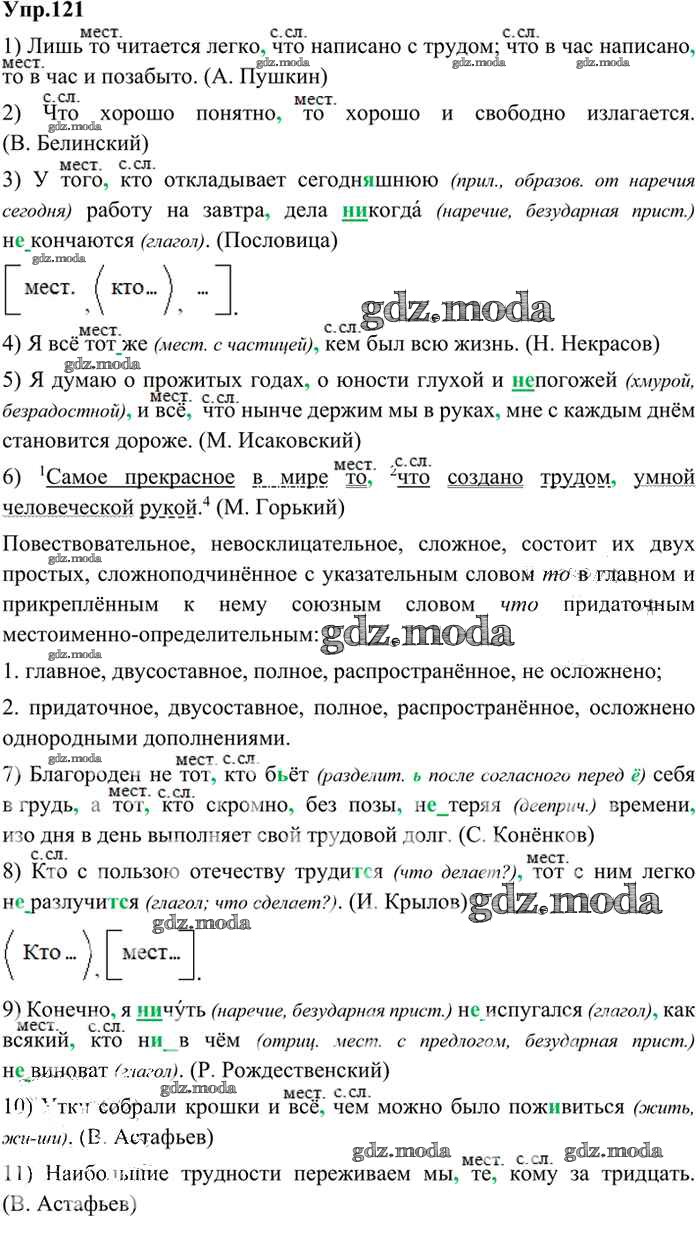 ОТВЕТ на задание № 121 Учебник по Русскому языку 9 класс Бархударов