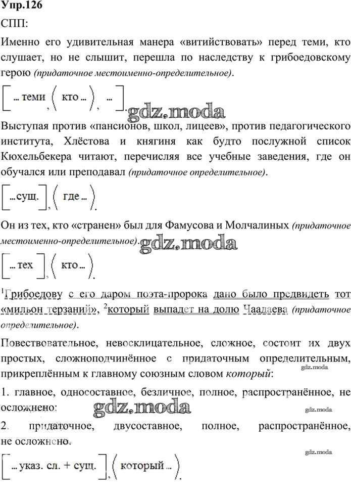 ОТВЕТ на задание № 126 Учебник по Русскому языку 9 класс Бархударов