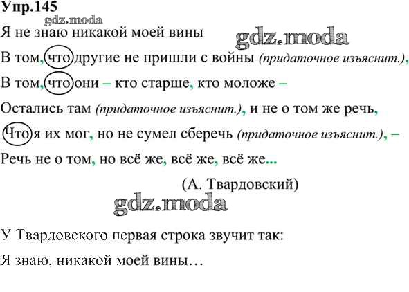 ОТВЕТ на задание № 145 Учебник по Русскому языку 9 класс Бархударов