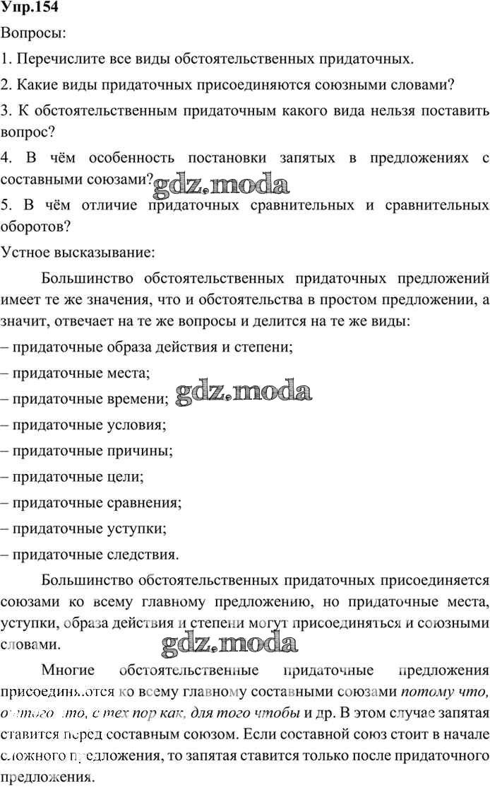 ОТВЕТ на задание № 154 Учебник по Русскому языку 9 класс Бархударов