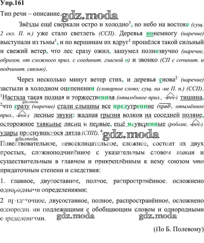 ОТВЕТ на задание № 161 Учебник по Русскому языку 9 класс Бархударов