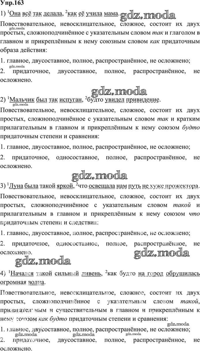 ОТВЕТ на задание № 163 Учебник по Русскому языку 9 класс Бархударов