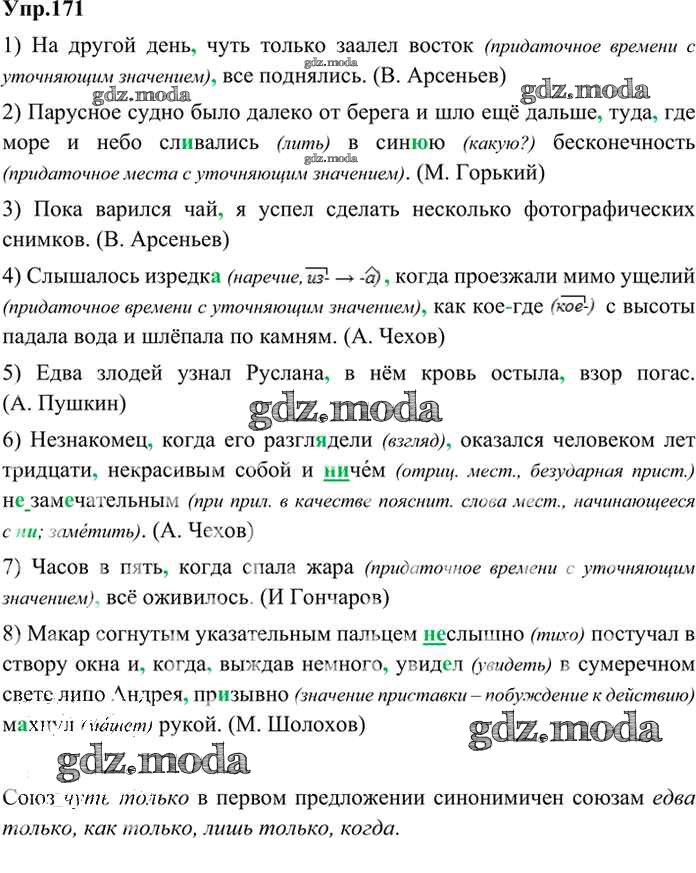 ОТВЕТ на задание № 171 Учебник по Русскому языку 9 класс Бархударов