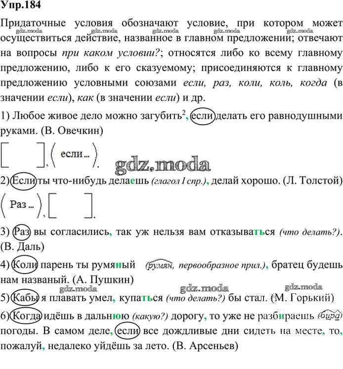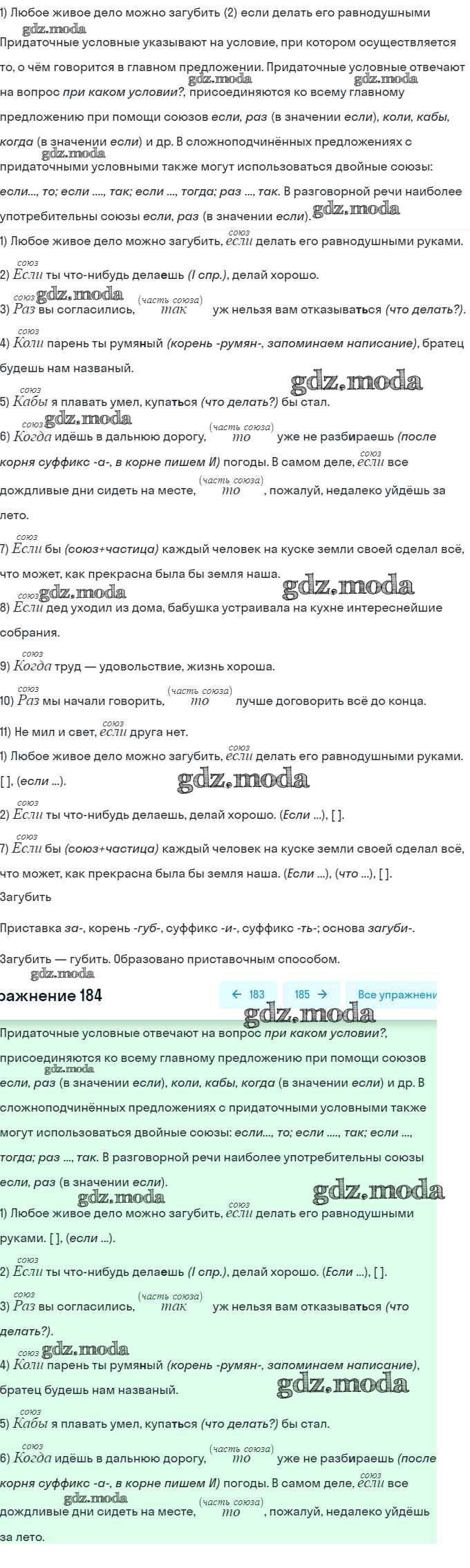 ОТВЕТ на задание № 184 Учебник по Русскому языку 9 класс Бархударов