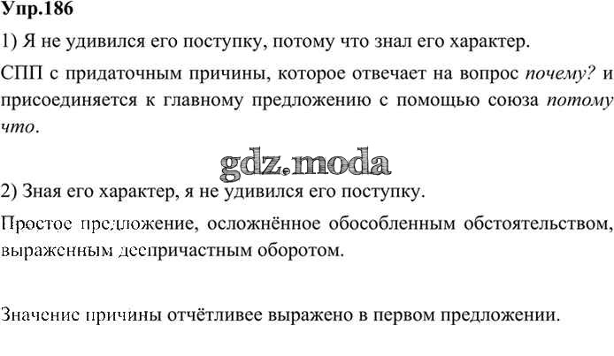 ОТВЕТ на задание № 186 Учебник по Русскому языку 9 класс Бархударов
