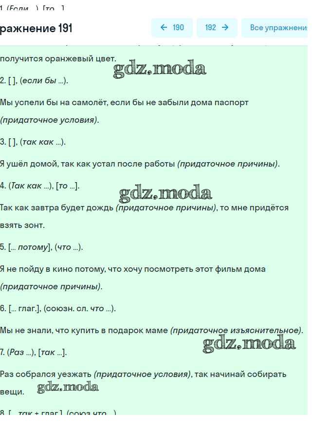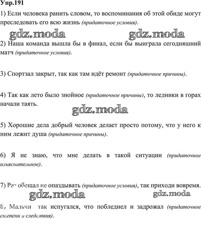 ОТВЕТ на задание № 191 Учебник по Русскому языку 9 класс Бархударов
