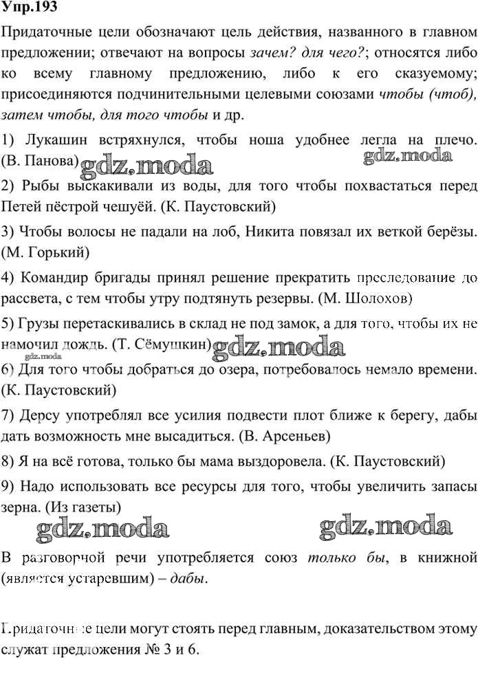 ОТВЕТ на задание № 193 Учебник по Русскому языку 9 класс Бархударов