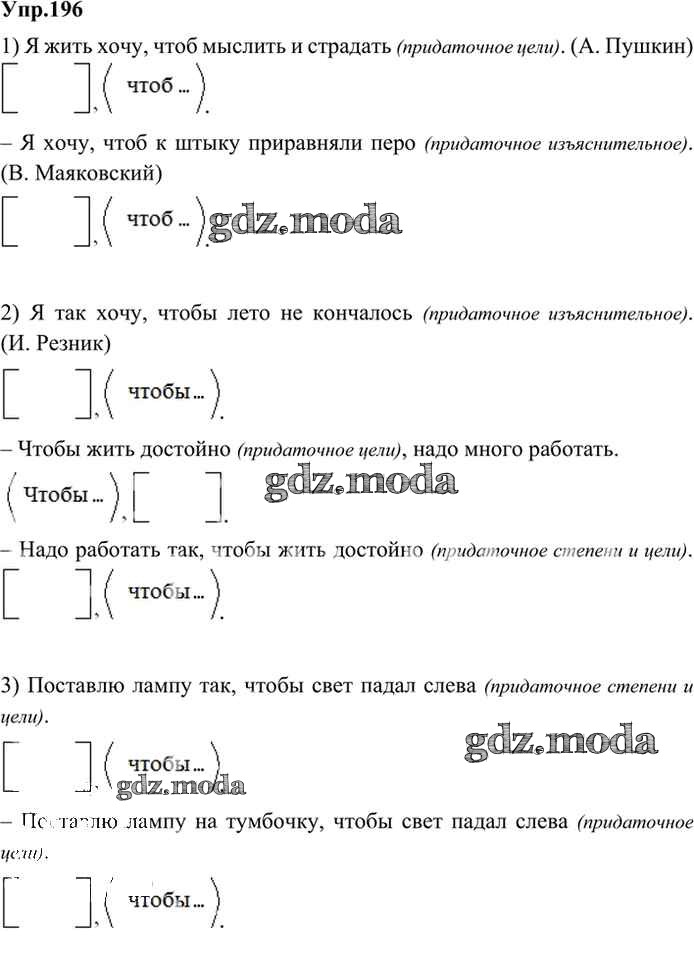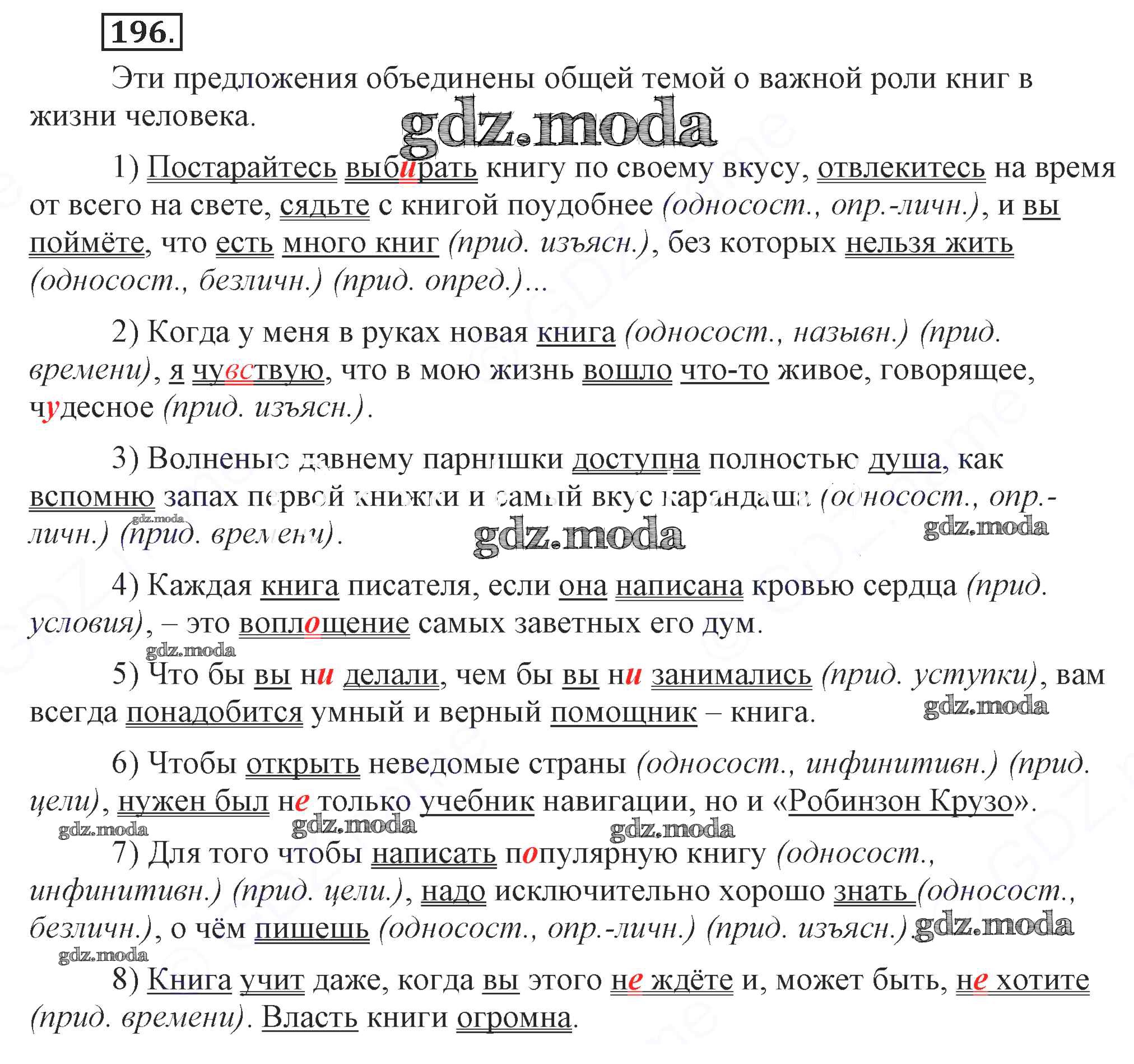 ОТВЕТ на задание № 196 Учебник по Русскому языку 9 класс Бархударов