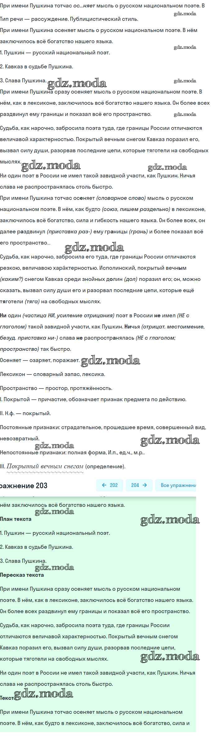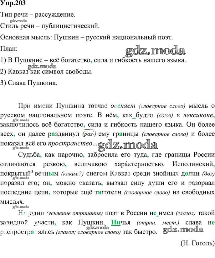 ОТВЕТ на задание № 203 Учебник по Русскому языку 9 класс Бархударов