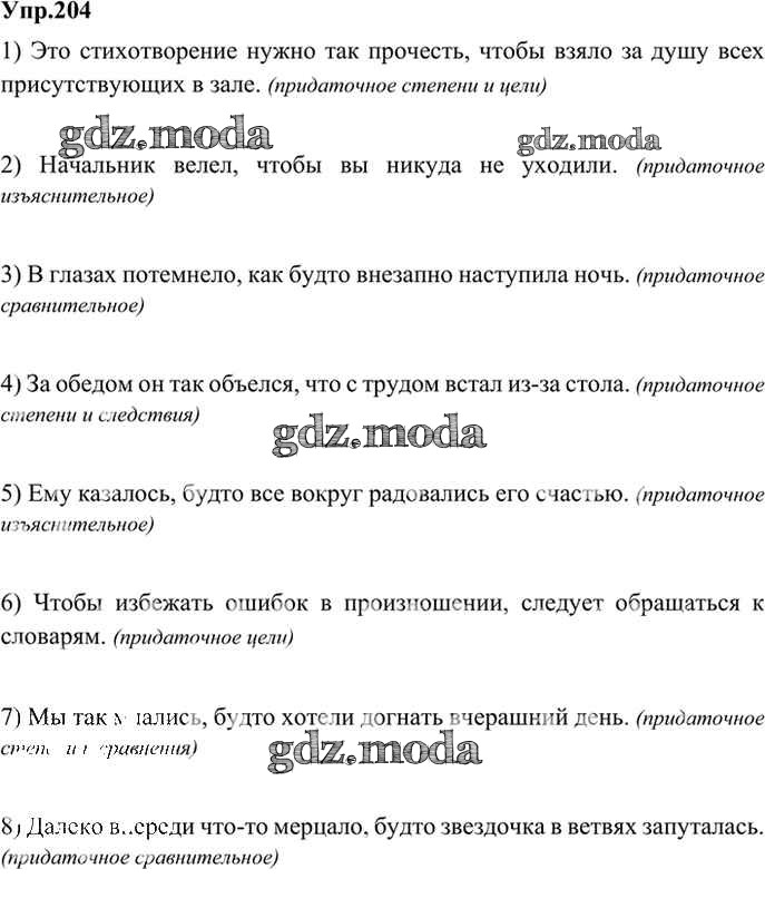 ОТВЕТ на задание № 204 Учебник по Русскому языку 9 класс Бархударов