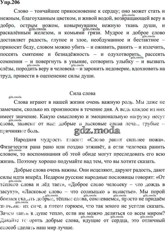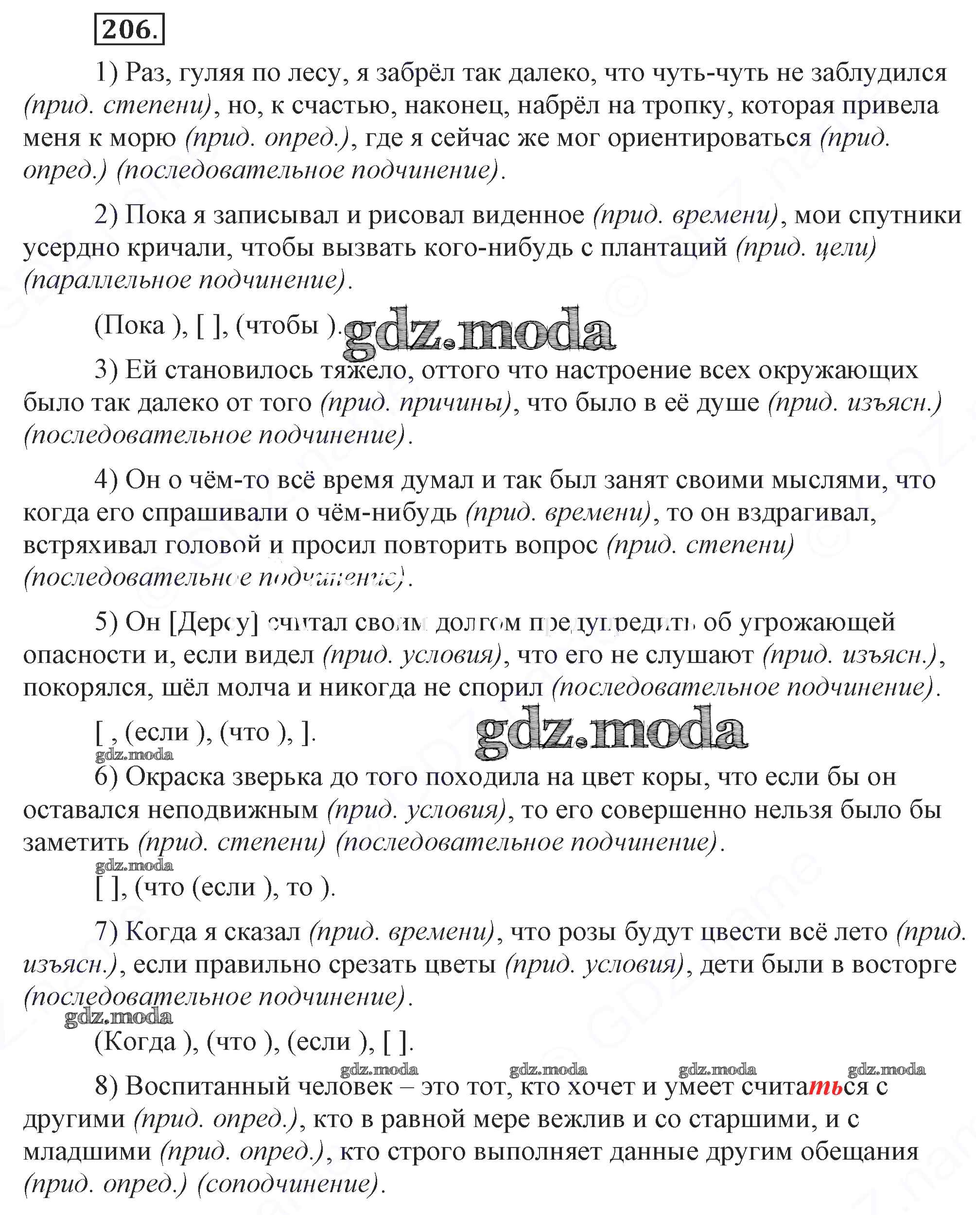 ОТВЕТ на задание № 206 Учебник по Русскому языку 9 класс Бархударов