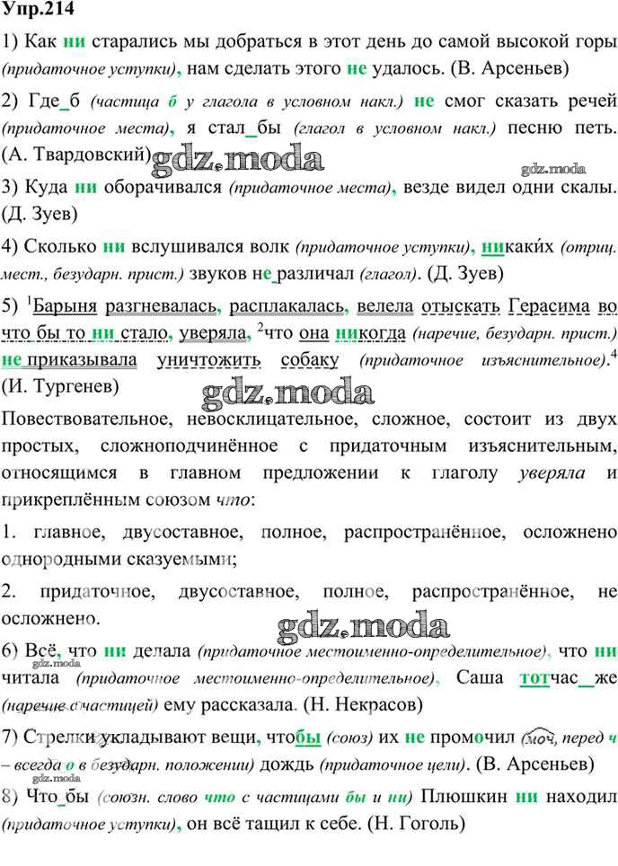 ОТВЕТ на задание № 214 Учебник по Русскому языку 9 класс Бархударов